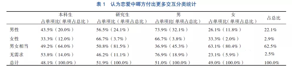 研究生更偏向较独立的恋爱互动模式,高学历赋予个人更多自由独立的追求。