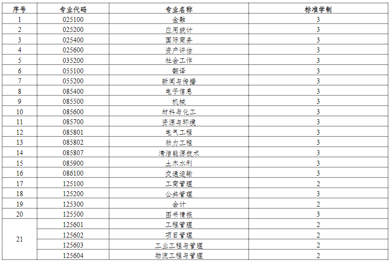 攻读学术学位硕士的标准学制为3年,攻读专业学位硕士的标准学制为2年或3年,学习年限最短不少于2年,最长不超过5年。各专业学位硕士的标准学制详见下表。