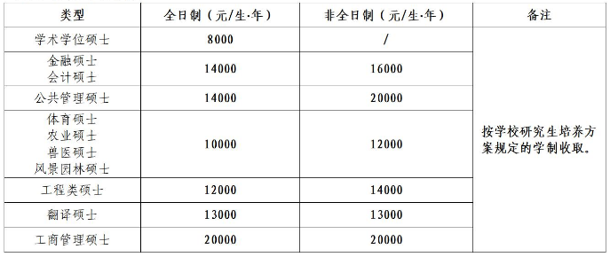 我校各类型研究生均需缴纳学费,学费收取标准如下,如有变动,按省发改委最新文件执行: